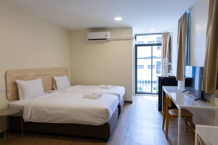 This thoughtfully designed room offers everything you need for a comfortable stay: a cozy bed for restful sleep, a smart TV for entertainment, and a small seating area to unwind. Clean, quiet, and efficient—perfect for travelers who appreciate simplicity and value.
